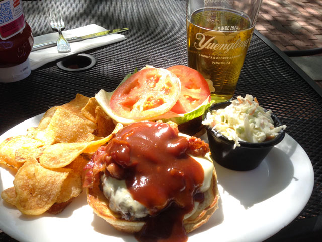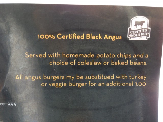 Je ne savais même pas où je mettais les pieds. C’est en rentrant le soir à la maison que je découvre la célébrité du lieu. Je prends place sur la terrasse et la serveuse, très serviable, me donne la carte. La lecture du menu m’interpelle. Manger un burger 100% black angus accompagné du chips maison et d’une salade Coleslaw très bien préparée me ravit. Cependant, les burgers suggérés m’effraient et me fait peur. Comment puis-je dévorer une burger avec du Mac & Cheese, ou avec des mozzarella stricks et des sweet patatoes fries. Je n’étais pas préparer à cette aventure. J’ai donc opté pour un traditionnel cheeseburger, bacon, cheddar and barbecue sauce. Mon favori, quoi ! J’ai fait en quelque sorte mon petit lala sur ce coup mais je n’ai pas osé.