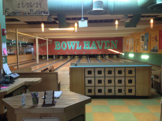 Et pour clore l’argumentation du choix de ce lieu, il est possible de jouer au Candlepin bowling au Flatbread ! Le Candlepin est une variante du bowling traditionnel qui se pratique essentiellement dans les Etats de Nouvelle Angleterre et dans les Canadian Maritimes. La balle est plus petite et les quilles sont plus rectilignes, et tout est mécanique. C’est génial !